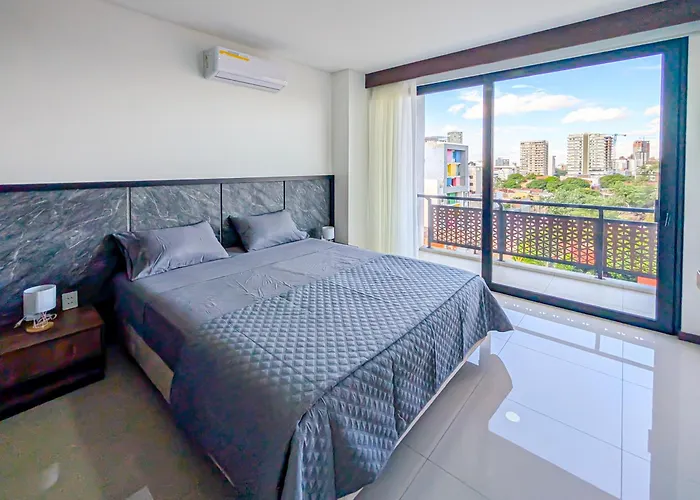 Featuring a private pool, the spacious Alto Busch 1d 42 Apartment Santa Cruz de La Sierra is a 5-minute walk from Patio Design Lifestyle Center. Wi-Fi and a free private car park are among the essentials at guests' disposal.